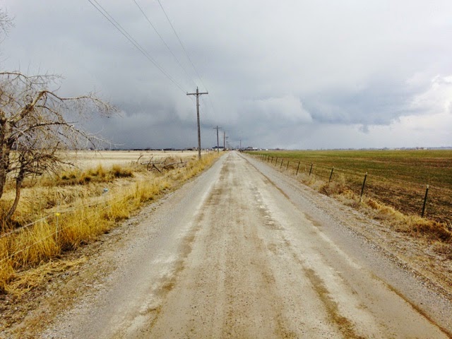 That's how it felt. The sky looked pretty good as I rolled out. I headed west to the unpaved roads. When I turned north the sky looked foreboding.